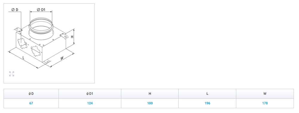 Flexivent õhujaotuskast DN75x2 / Ø 124mm, 400x200x100mm