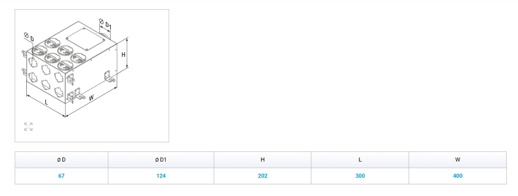 Flexivent õhujaotuskast DN75x6 / Ø 124mm, 300x400x202mm