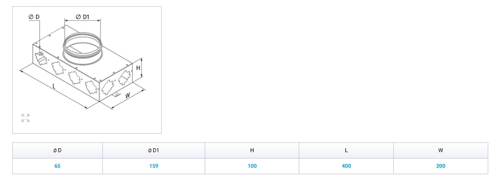 Flexivent õhujaotuskast DN75x8 / Ø 159mm, 400x200x100mm