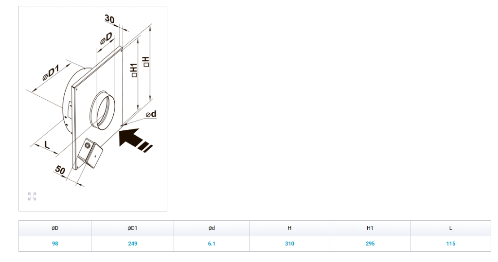 Seinale paigaldatav tsentrifugaalventilaator sissepuhke- ja väljatõmbelahendusteks. Varustatud tahapoole kaardunud labadega tiivikuga, mis tagab tõhusa ja vaikse töö. Vastupidav kaetud terasest korpus ning AC-mootor. Ventilaatorit saab paigaldada igas asendis.