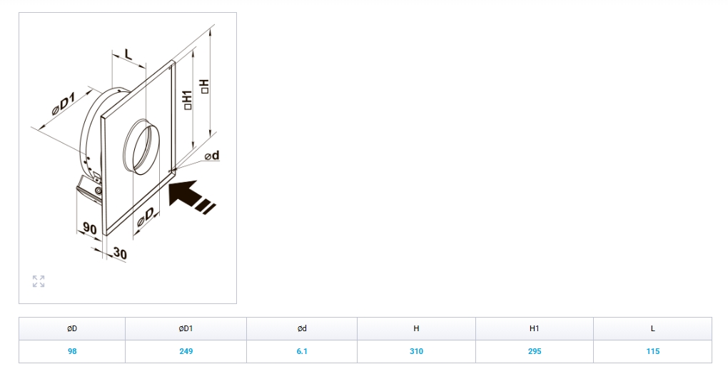 VC-PN 100 Q kanali tsentrifugaalventilaator 210 m³/h